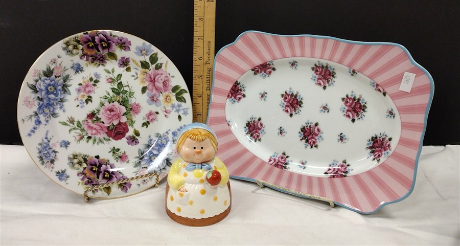 TWO PORCELAIN PLATES AND JOSEF ORIGINALS SHAKER