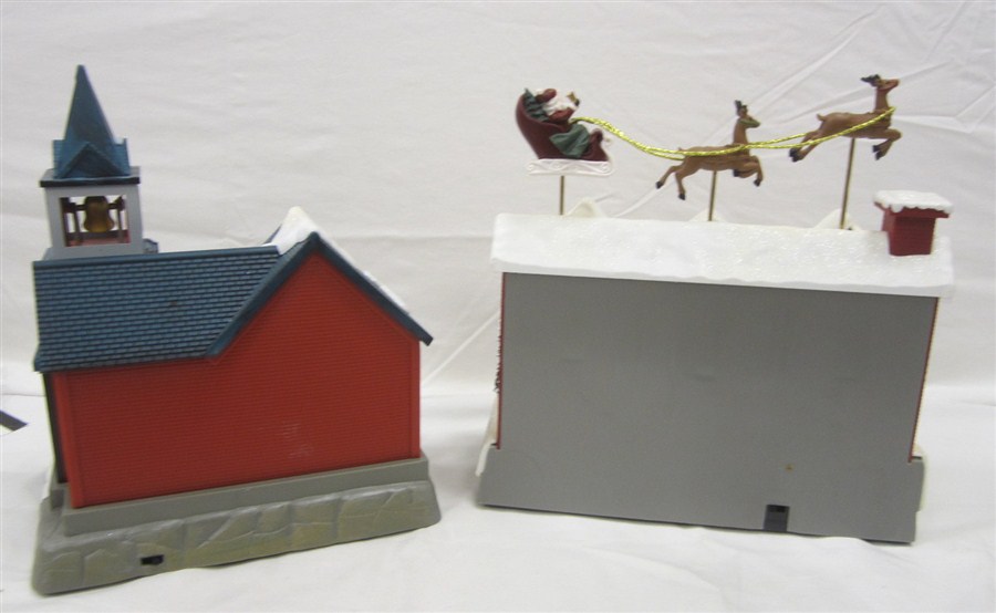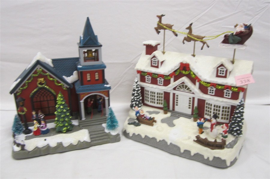 TWO BATTERY OPERATED CHRISTMAS HOUSES. NOT TESTED, WE DO NOT HAVE BATTERIES
