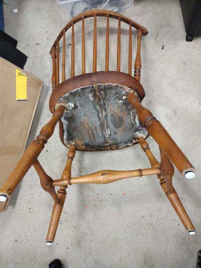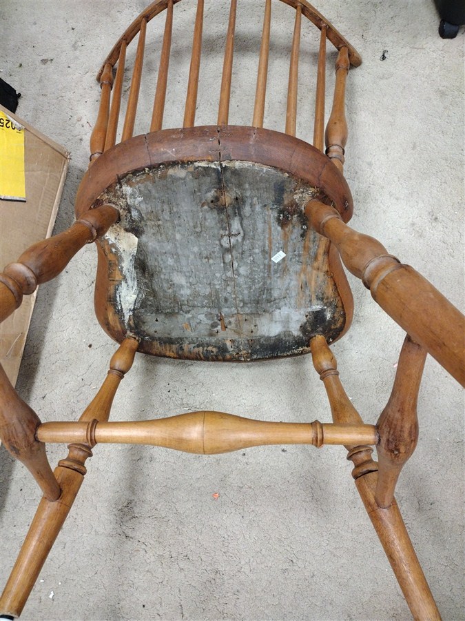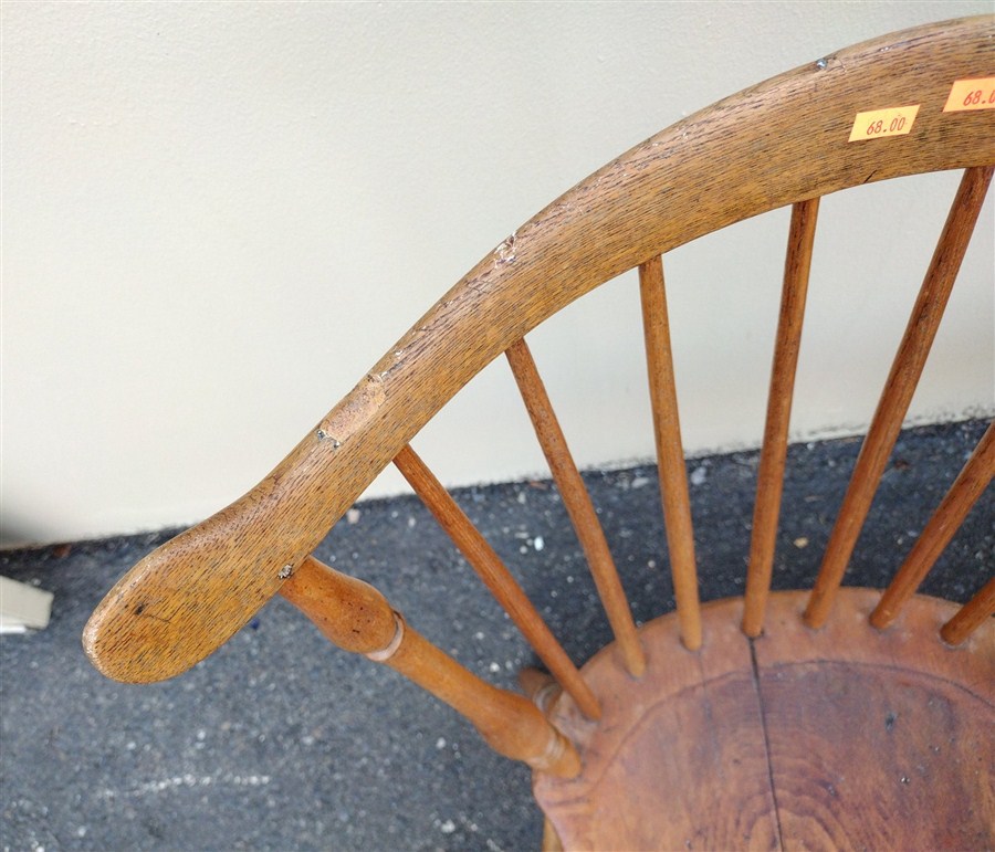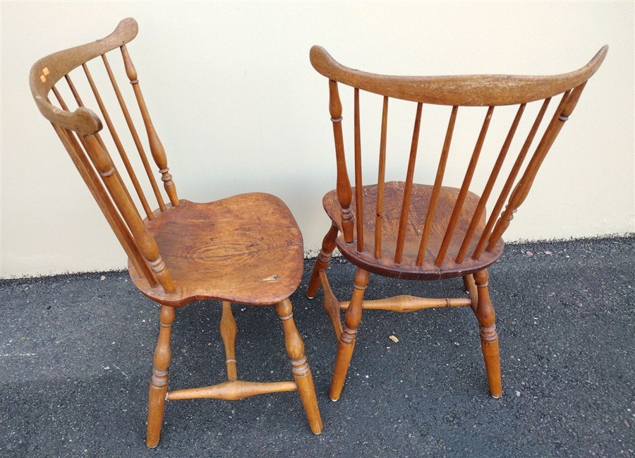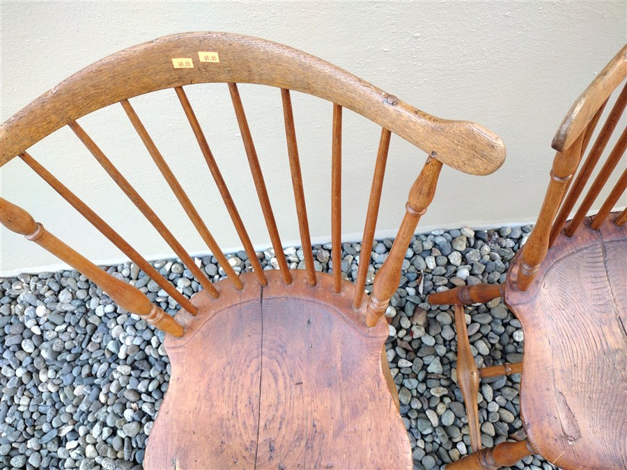 A PAIR OF LATE-18TH -EARLY 19TH C WINDSOR CHAIRS. FROM AN AMERICAN EAST COAST ESTATE. AT SOME POINT IN THEIR LONG HISTORY THE PAINT HAS BEEN STRIPPED AND REFINISHED. LOTS OF INTERESTING OLD REPAIRS. DUE TO AGE, BEST USED AS DISPLAY PIECES