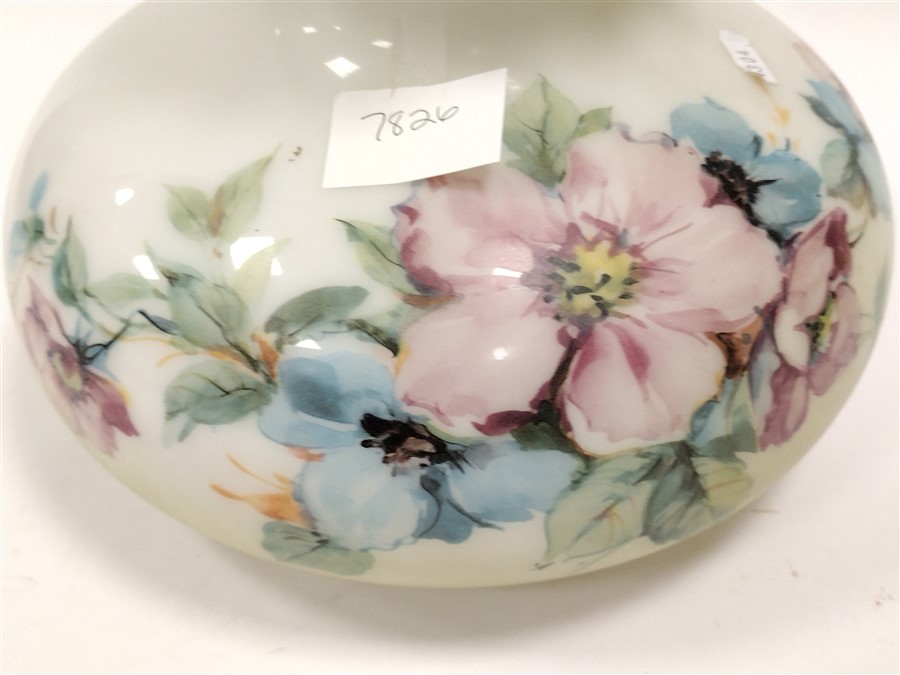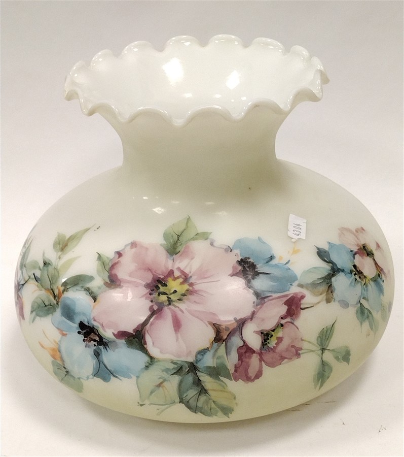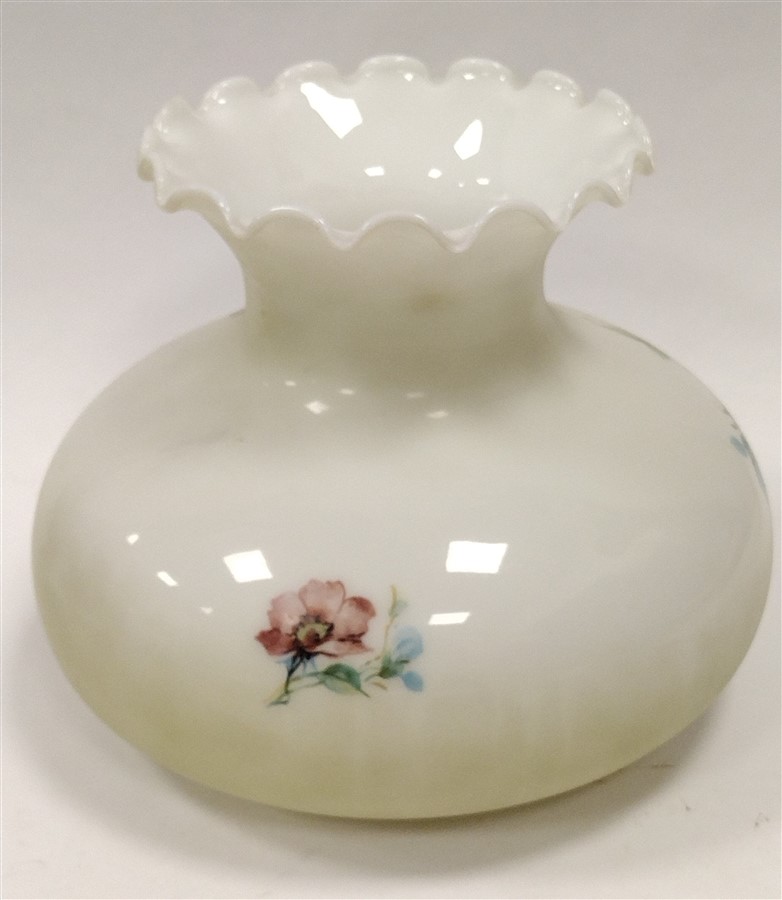 GLASS KEROSENE LAMP SHADE WITH PRINTED FLORAL DESIGN