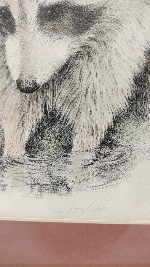 PENCIL SIGNED AND NUMBERED 173/200 RACCOON COLORED ETCHING